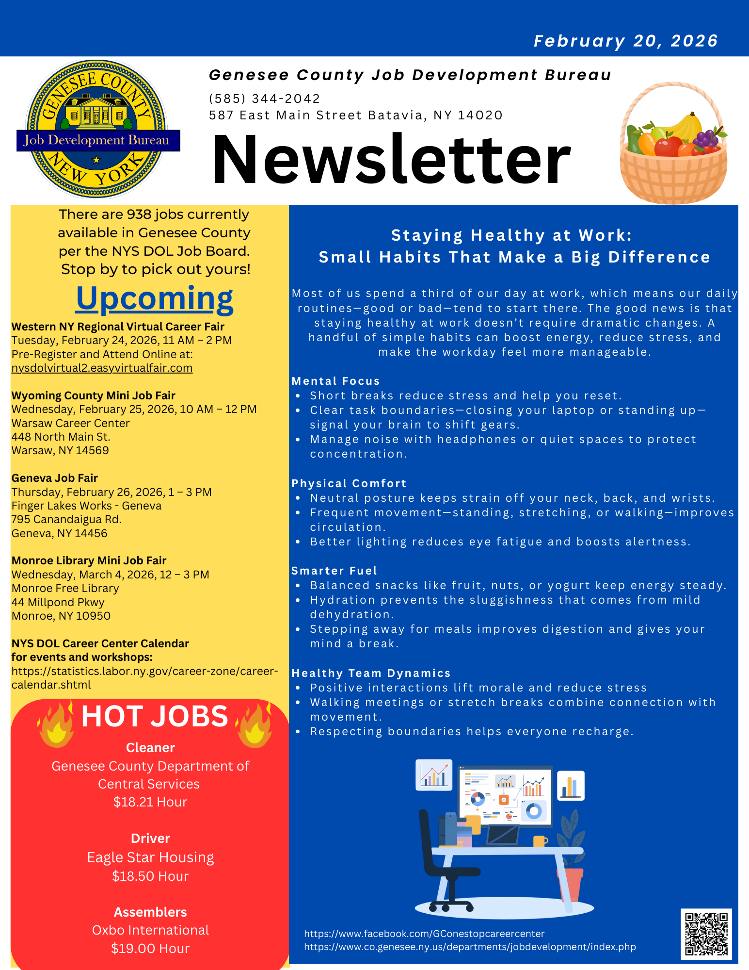 Phone: (866) 674-4560 or (585) 344-2042 Genesee County Job Development Bureau